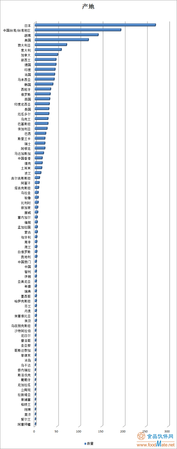 統計顯示,這些未準入境食品來自八十多個國家或地區,其中,日本、臺灣地區、越南、美國位居前四。