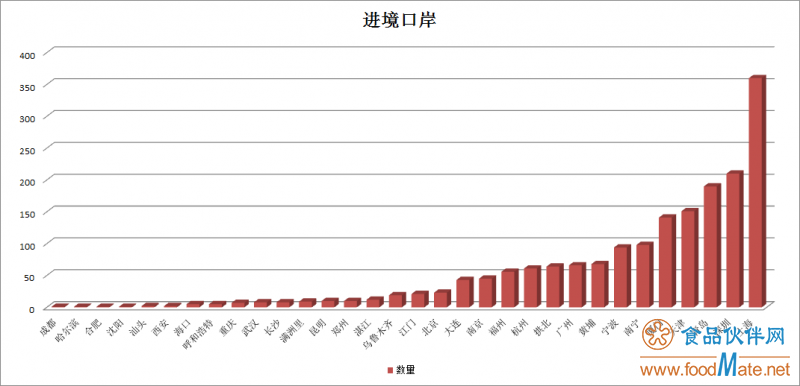 據統計,這些未準入境食品進境口岸涉及上海、深圳、青島、天津、廈門、南寧、寧波、黃埔、廣州、拱北、杭州、福州、南京、大連、北京等30多個城市。各口岸未準入境食品數量如下圖。